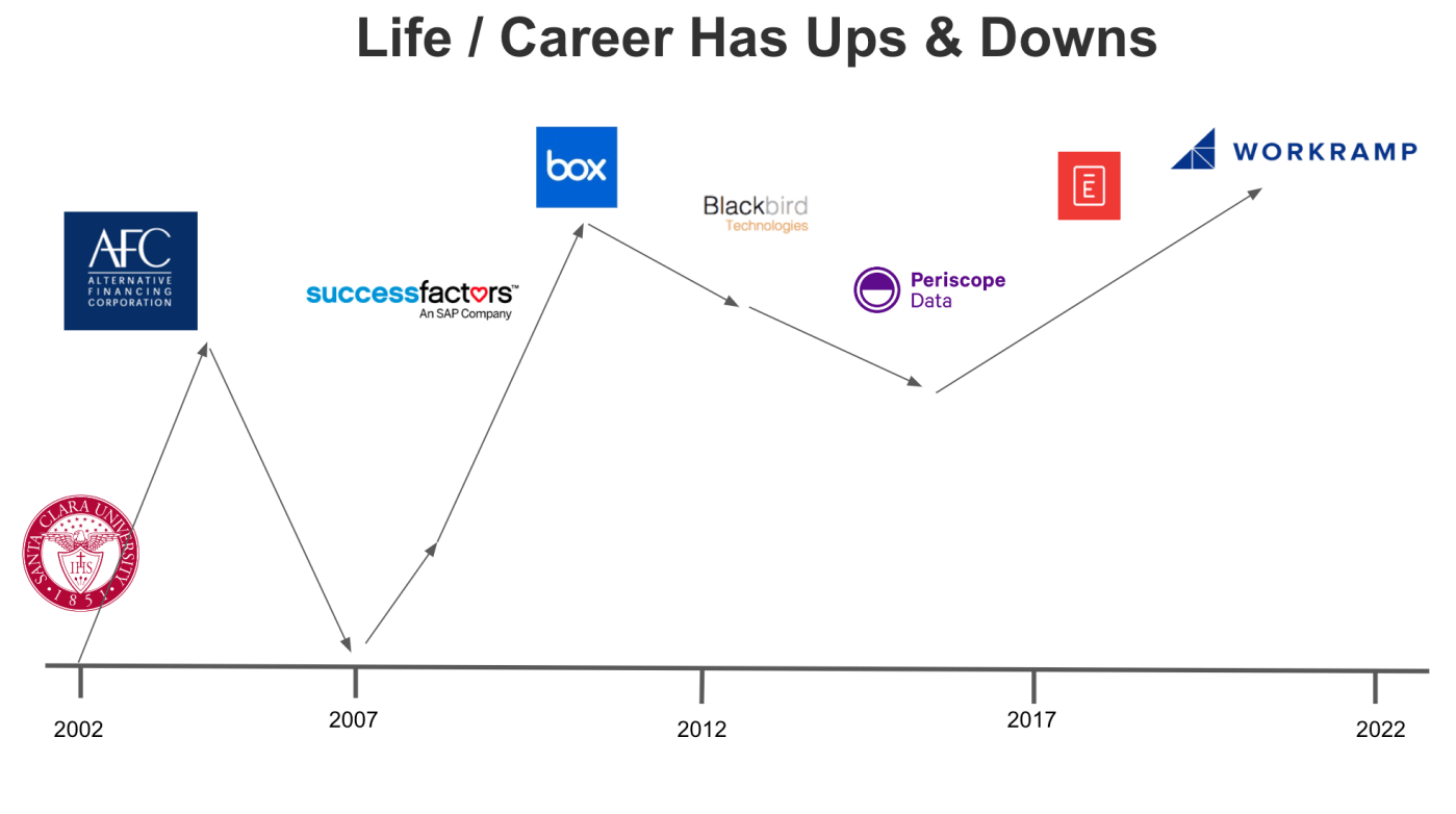 Its been 20 years since I graduated from Santa Clara University. Looking back on my career so far I can definitely say I’ve ben mostly fortunate and have plenty of successes and high points to look back on. I’ve also met so many incredible people and learned a lot along the way. I’ve held nearly every job possible in customer operations, literally from my first job out of school as a receptionist all the way to my most recent job as a CRO managing 100+ people across sales and customer success. I’ve seen 4 SaaS exits (2 IPOS, 2 acquisitions) and have seen “hyper growth” on several occasions. All in all its been a fun and fulfilling ride! I have also though had my fair share of disappointments and heartbreak. I care deeply and pour everything into my work. When I am engaged in a role, I work tirelessly to be the best I can be as well as do everything I can to help others around me be better. Sometimes that effort is rewarded, sometimes it is not.